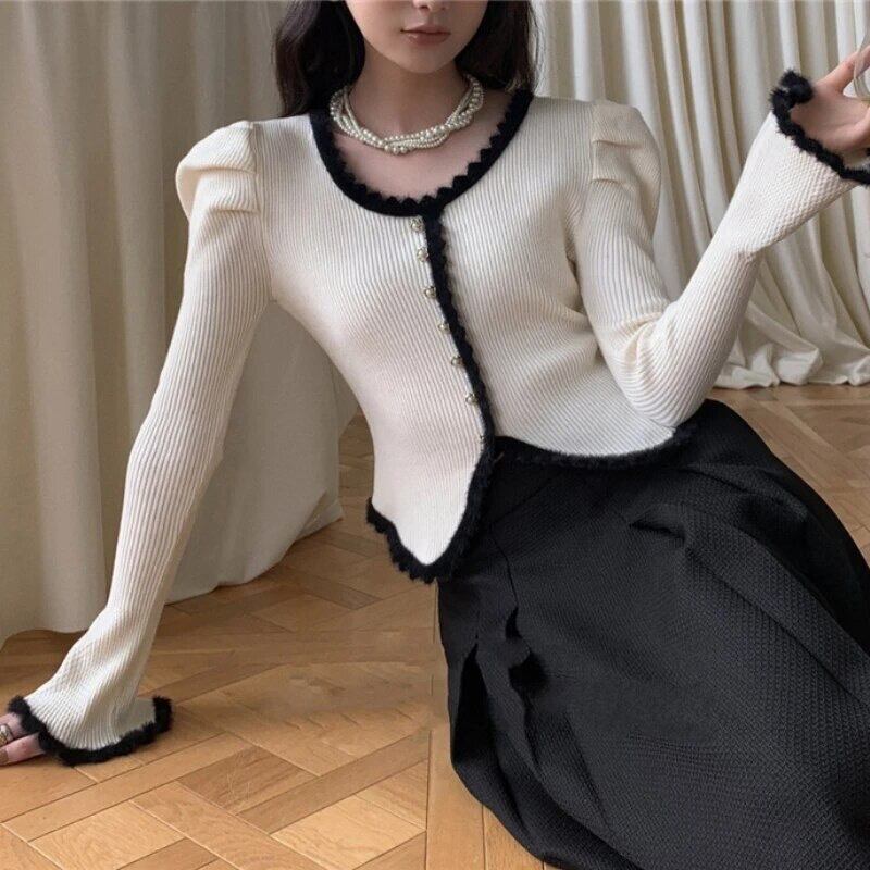 フレンチスタイルソフトカーディガン[Black,Apricot]