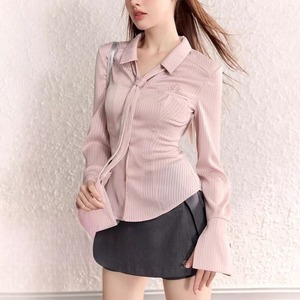 サテンシルクスリムウェストシャツ[Blue,Pink]